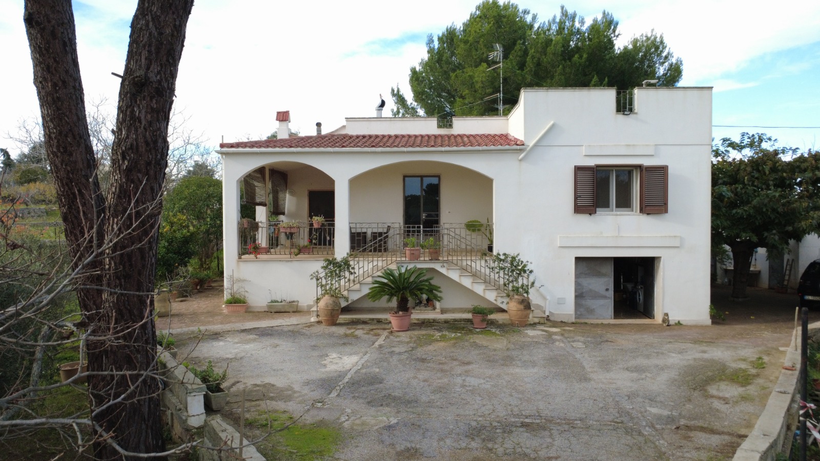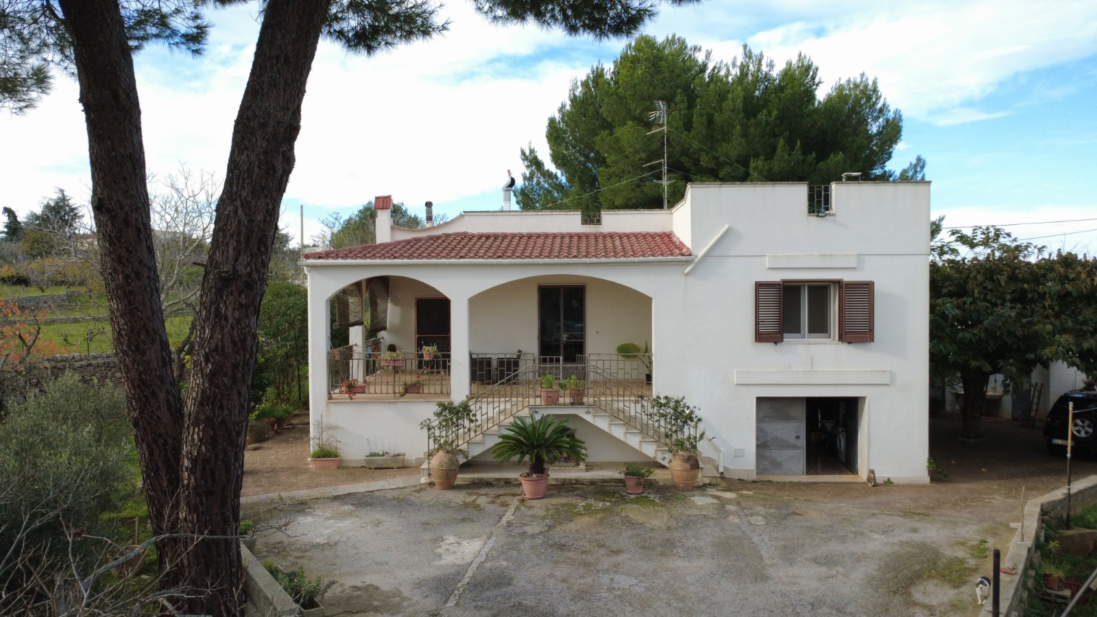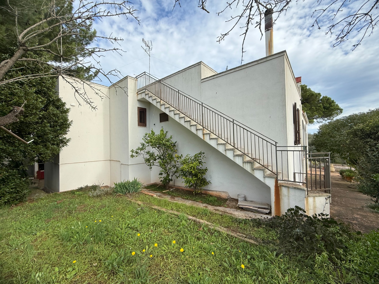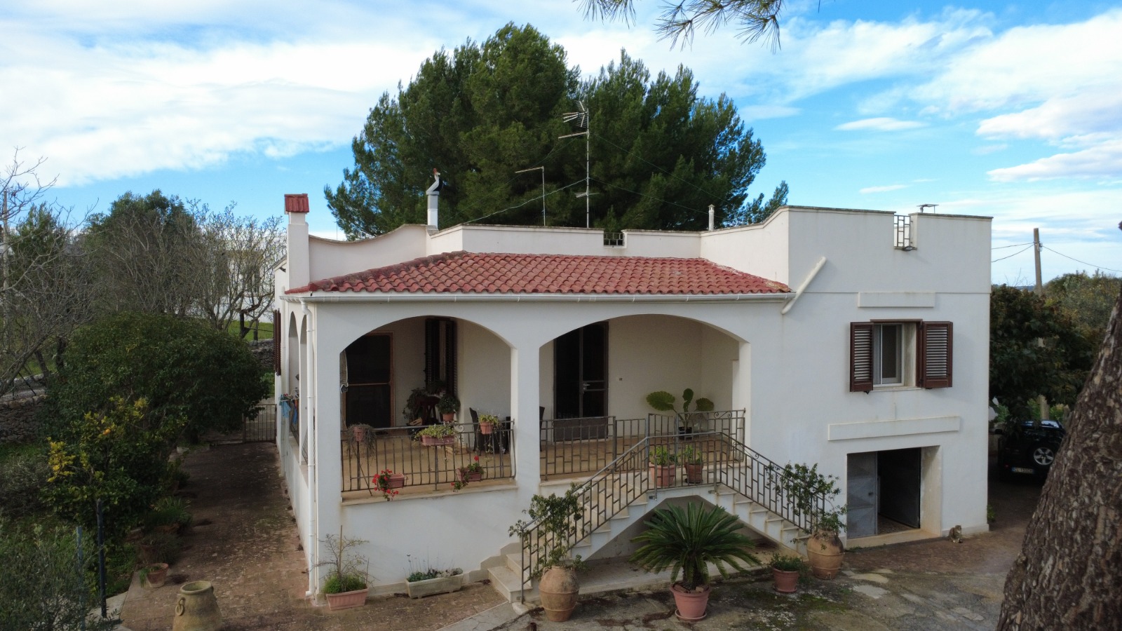 A masonry staircase leads to the private panoramic terrace, offering beautiful views over the countryside and towards Ostuni and Ceglie Messapica.